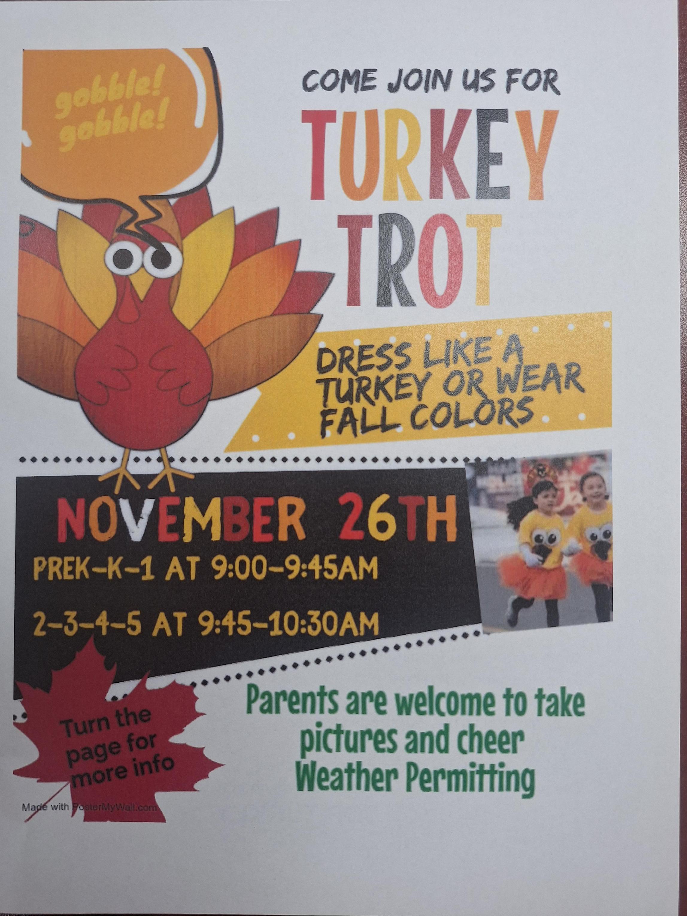 J. W. Wakeman is Hosting our 2nd Annual Turkey Trot Next Wednesday November 26th in the School Playground